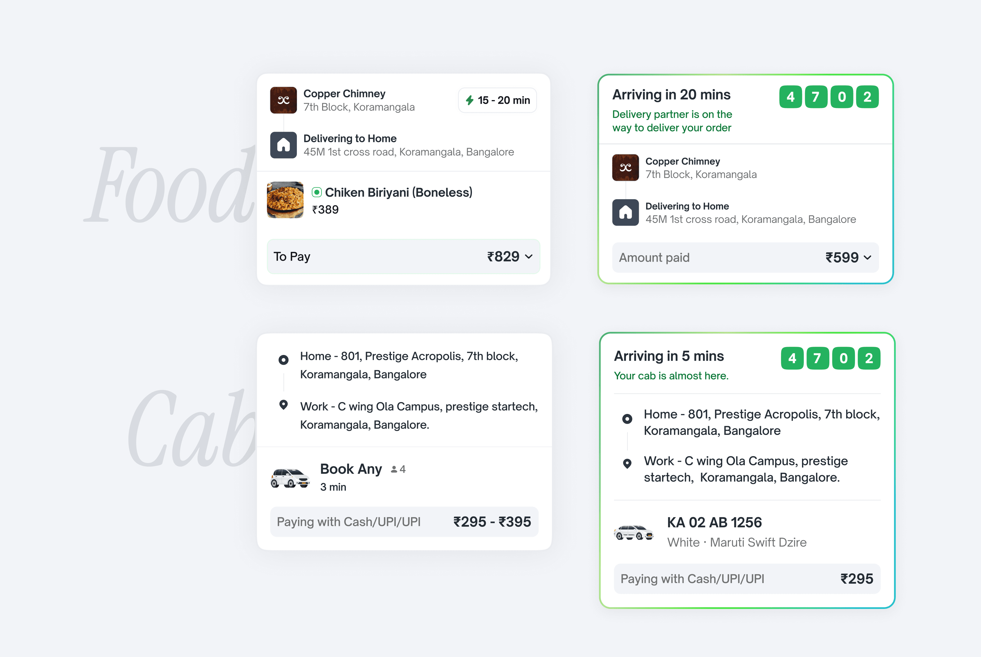 Redesigned Ola Foods’ order tracking to make live updates clearer, faster, and easier to understand through thoughtful details.